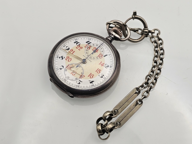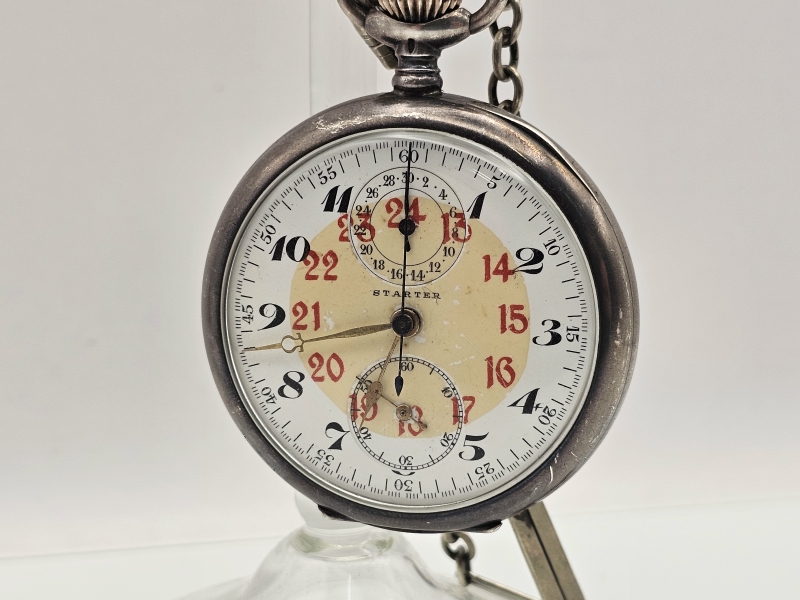 #1123 Hopeinen taskukello, Starter ajanottokellolla
