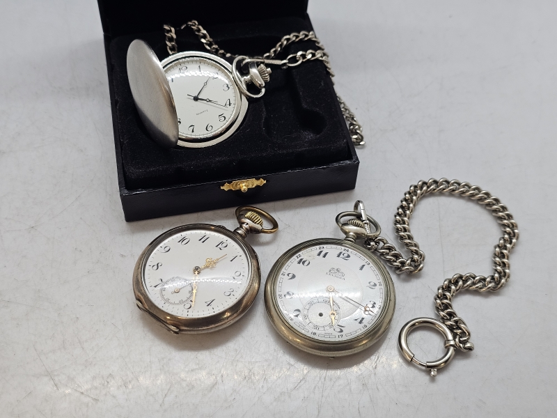#1130 - 3kpl taskukelloja joista 1kpl hopeinen