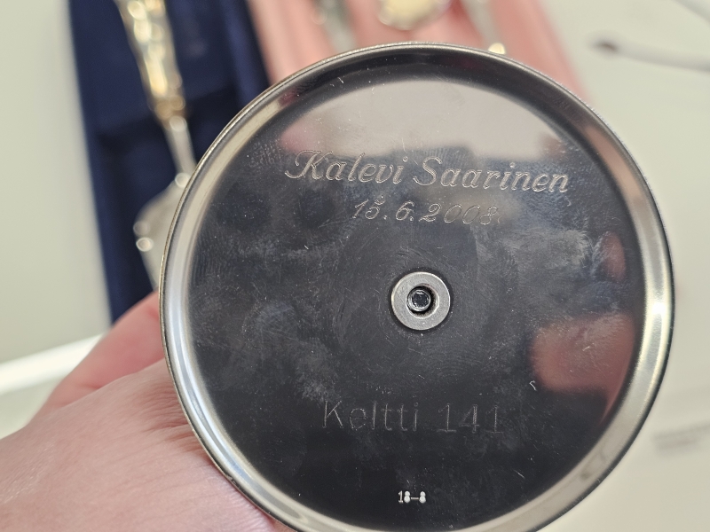 Hopeisten bruttopaino 239g. 813-830h. Osassa kaiverrukset