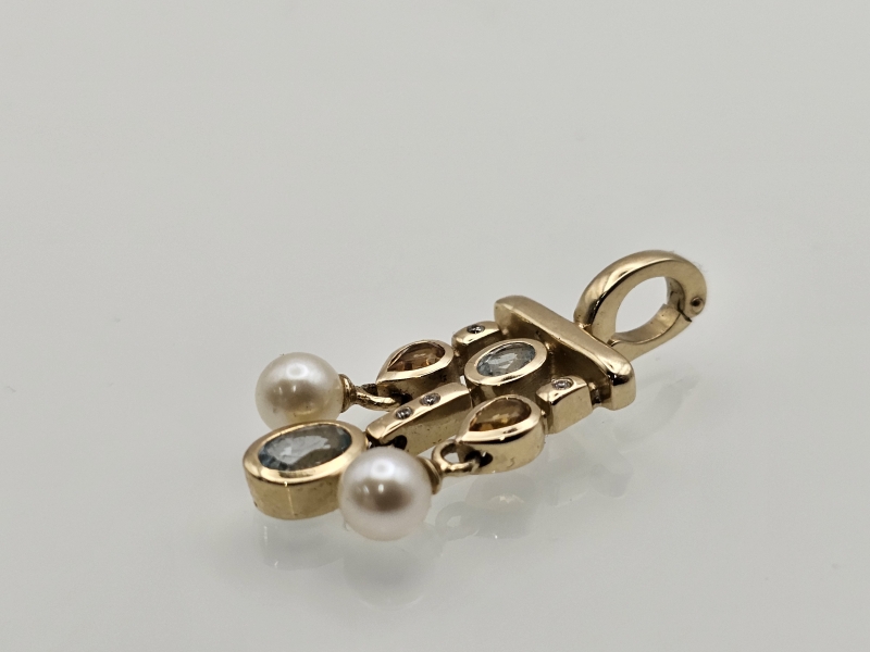 #1134 - 14k kultainen riipus jossa mm. helmet, timantteja ym., 5,18g