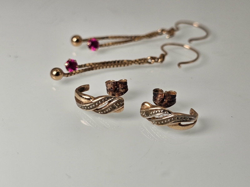 #1140 Kaksi paria 14k kultaisia korvakoruja, 2,18g