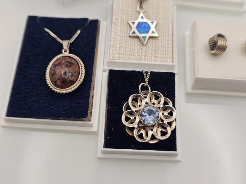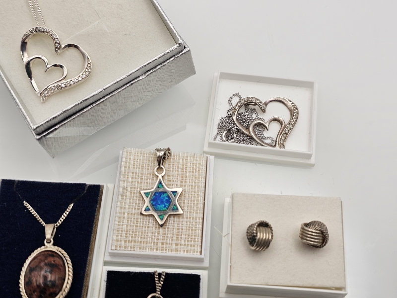 #1193 Erä hopeakoruja joista suurin osa kaulakoruja