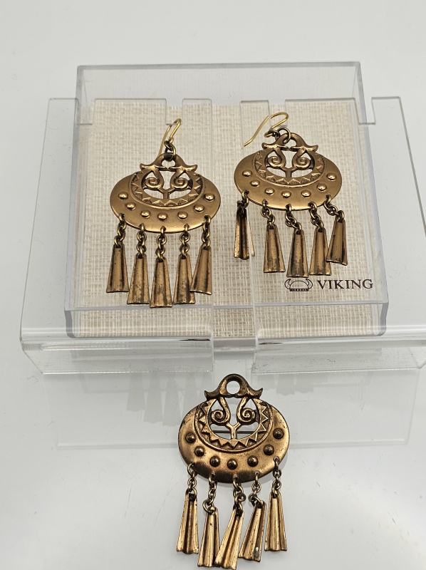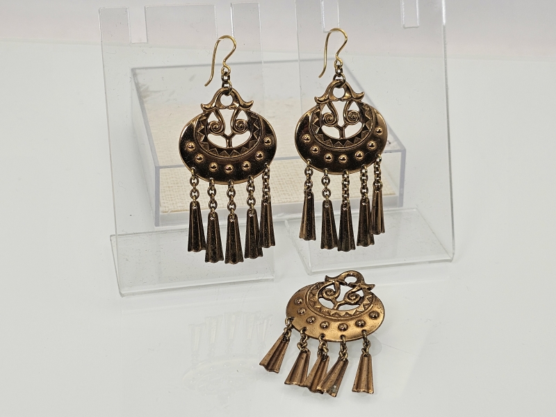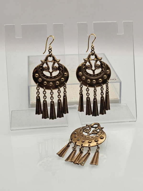 #1198 - Kalevala koru pronssiset Kuutar -korvakorut ja rintakoru