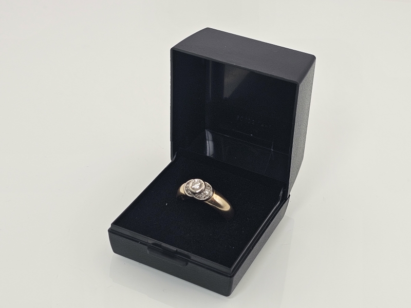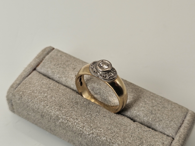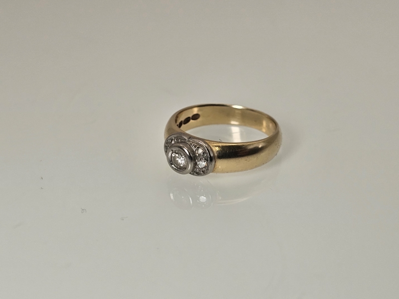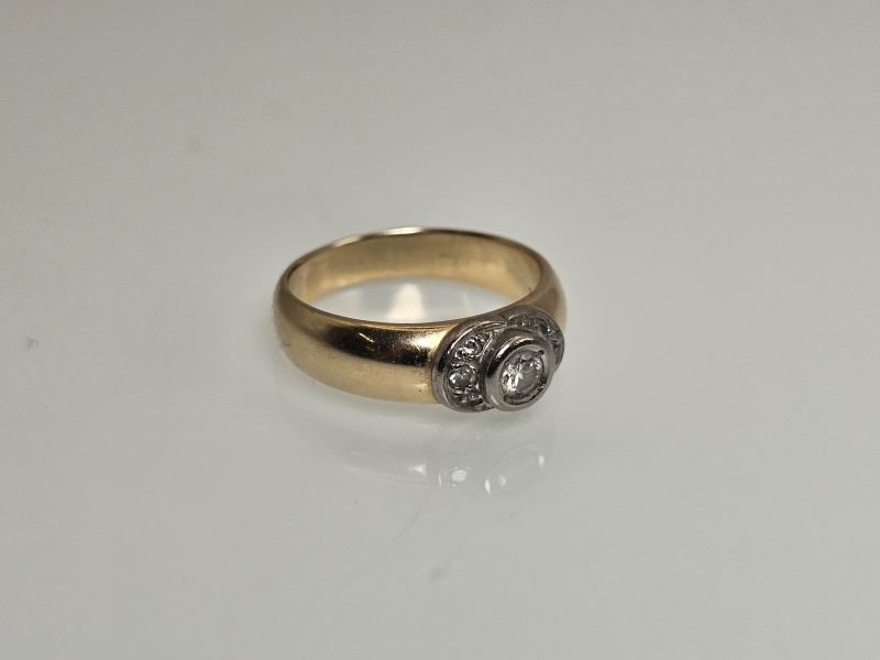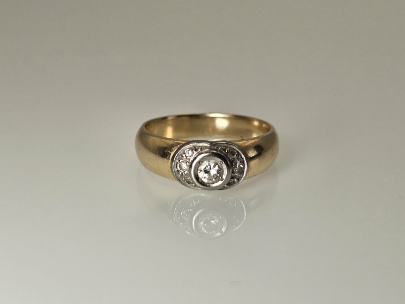 #1148 14k kultainen sormus timanteilla joista isoin n. 0,20ct, 5,51g