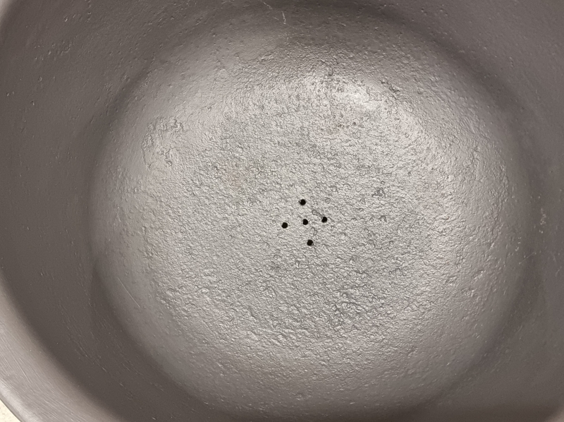 Pohjaan porattu reiät, padan halkaisija 65cm