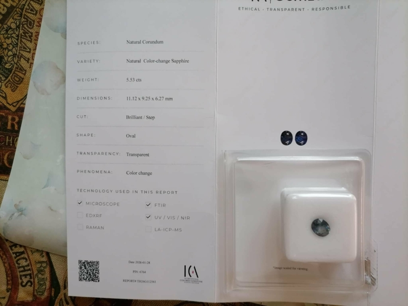 #1208 2kpl safiireja: 9,83ct / 5,53ct + aitoustodistukset