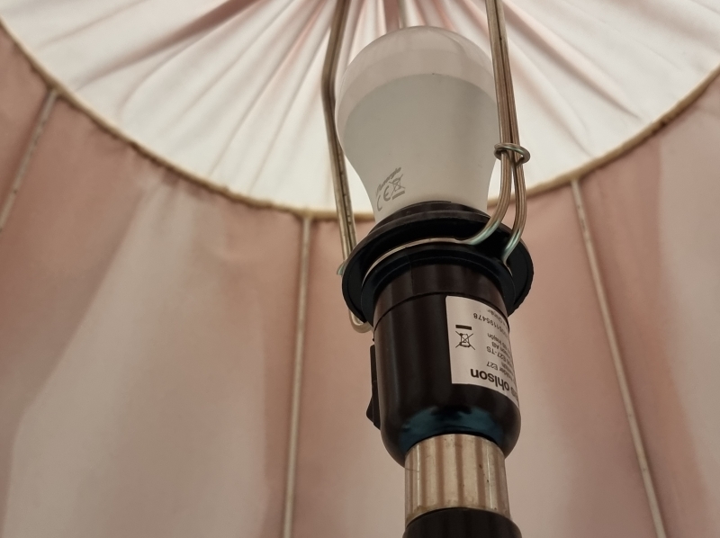 #1902 - Vanha jalkalamppu kangasvarjostimella