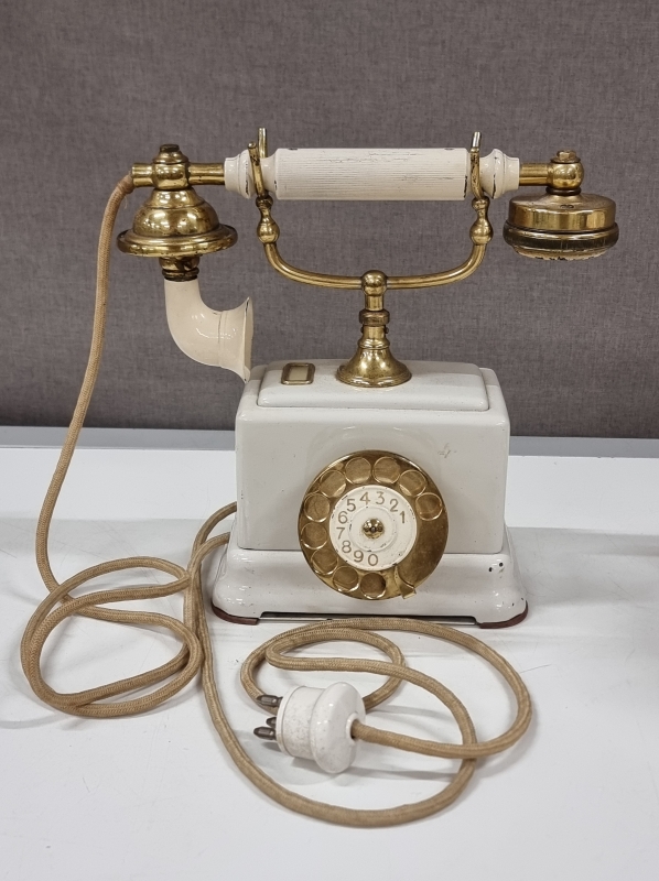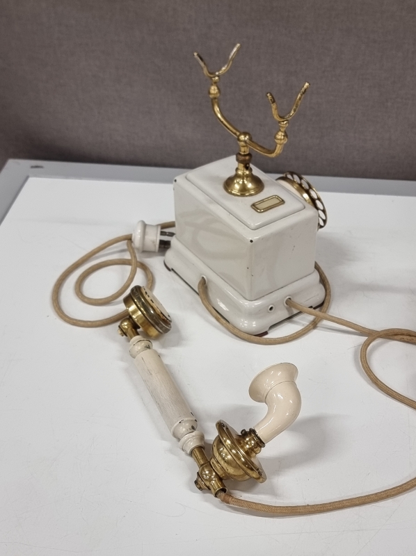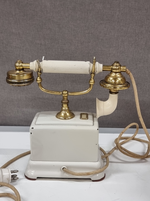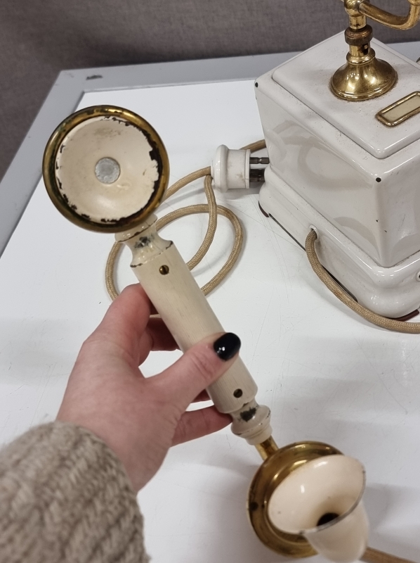 #2231 Pöytävalaisin italialaisella lasikuvulla + vanha puhelin