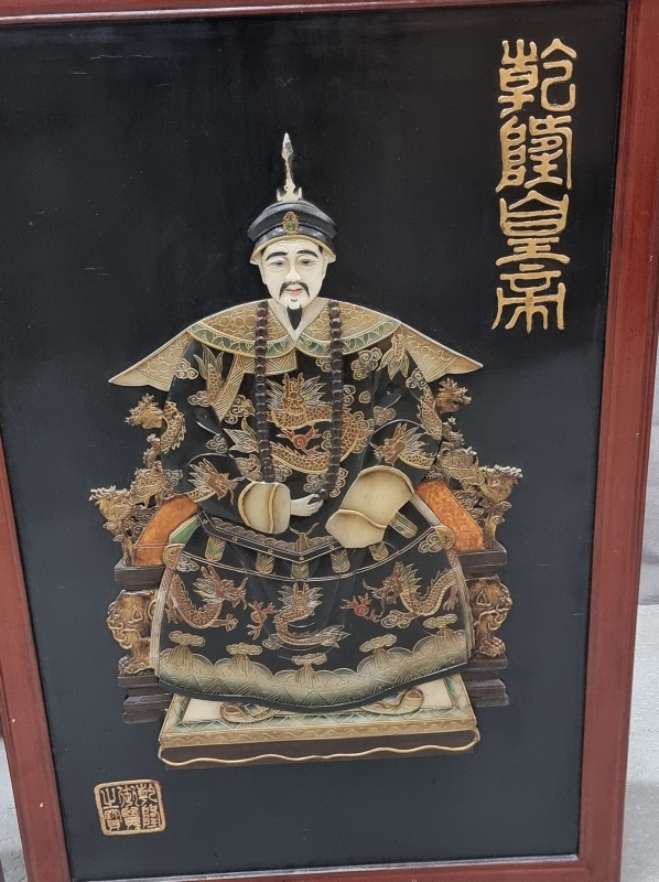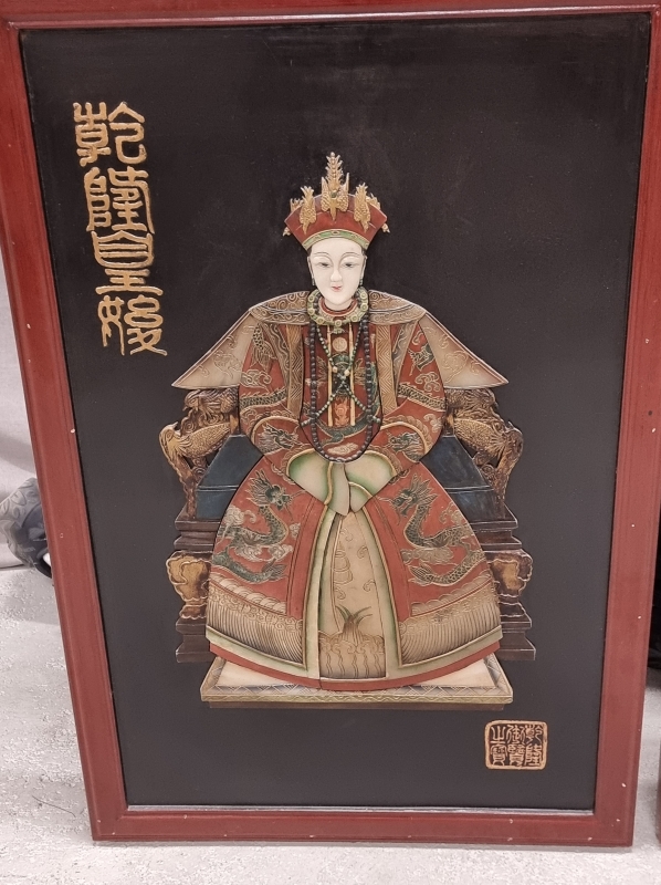 #2100 - 2kpl itämaisia tauluja puukehyksillä, Keisari ja keisarinna