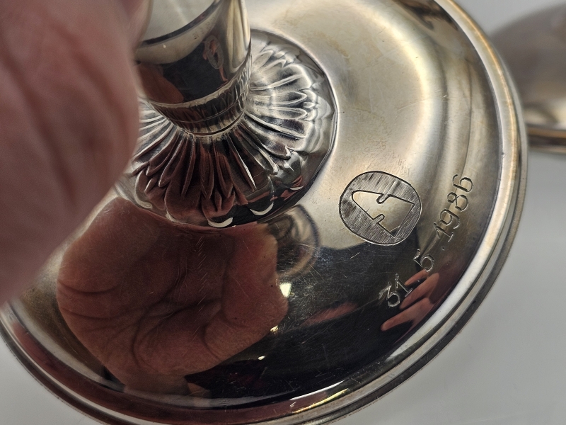 #1175 2kpl hopeisia kynttilänjalkoja, 830h, br. 307g