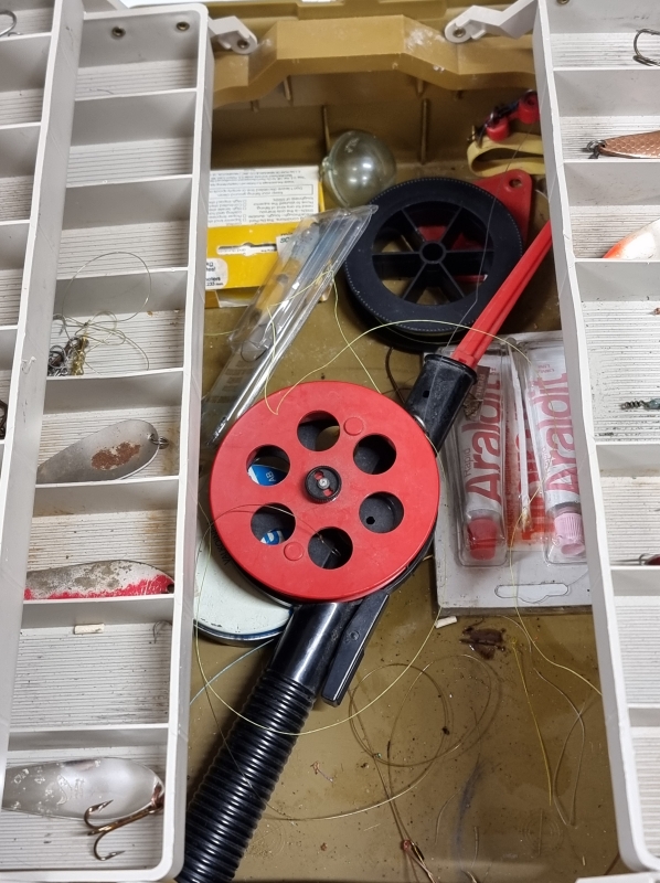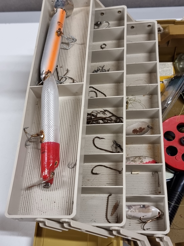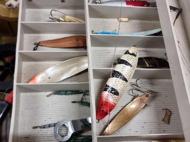 #2302 - Erä kalastustarvikkeita, ABU Cardinal 57, ABU Garcia HI-LO vaappuja ym.
