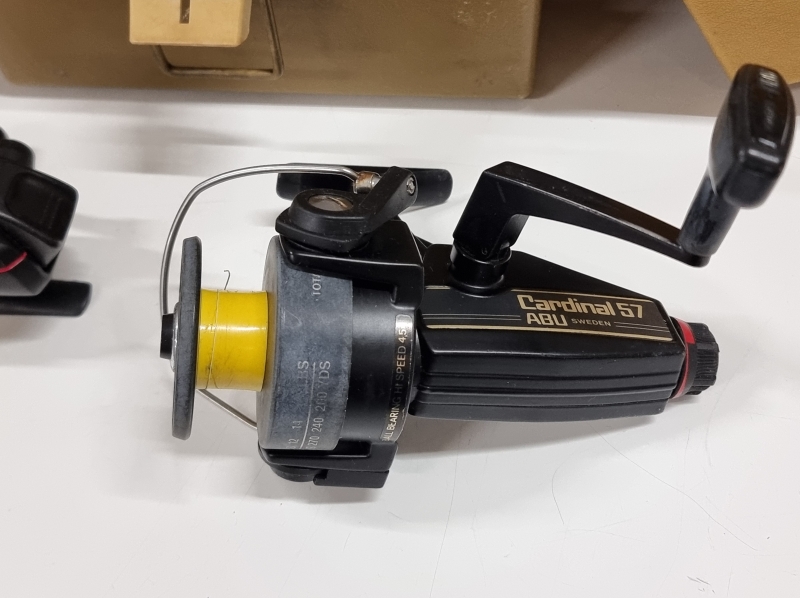 #2302 Erä kalastustarvikkeita, ABU Cardinal 57, ABU Garcia HI-LO vaappuja ym.