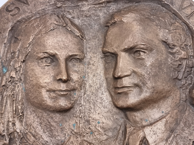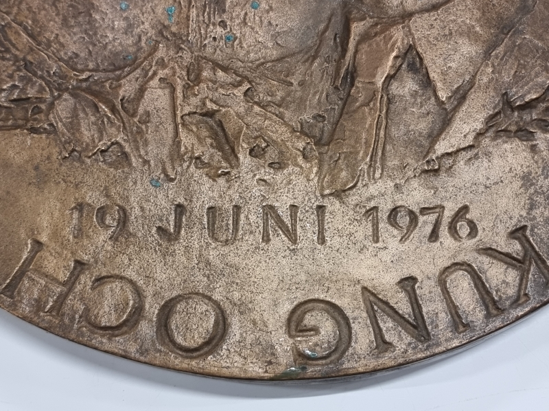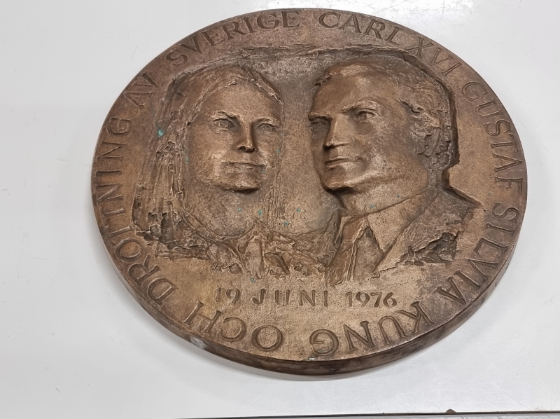 #1803 - Pronssinen seinäreliefi "Kung och drottning av Sverige Carl XVI Gustaf Silvia