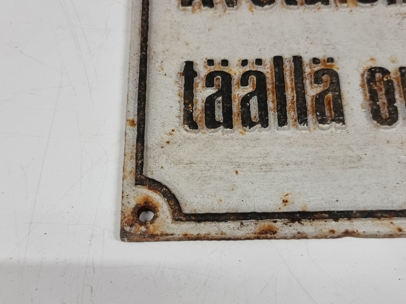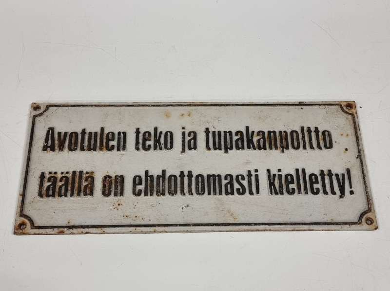 #2102 - Valurautakyltti "Avotulen teko ja tupakanpoltto..."