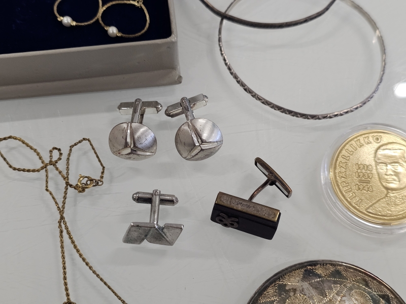 #1247 - Erä pukukoruja, Parker Duofold 14k kärkellä, Aarikka ym.