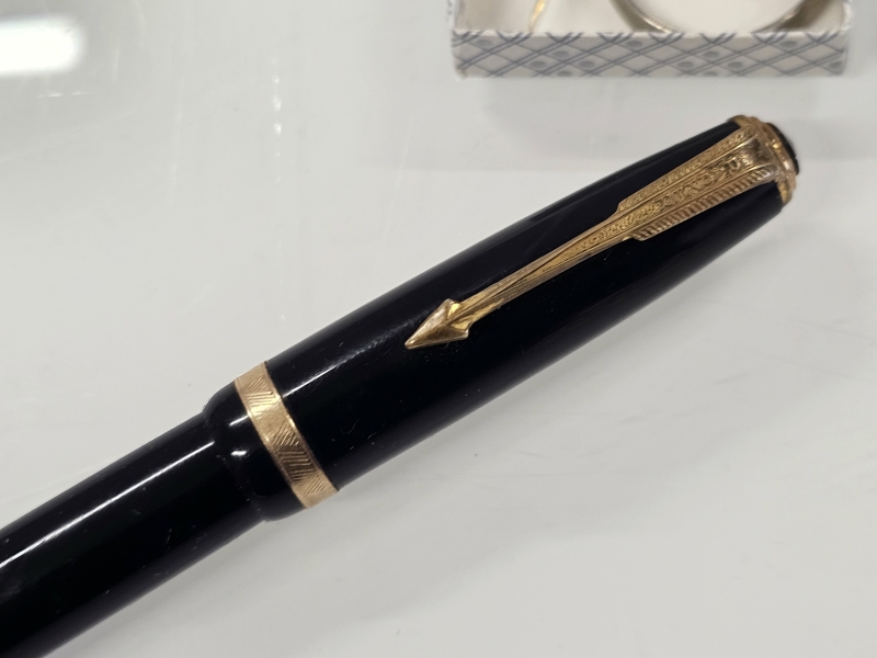 #1247 Erä pukukoruja, Parker Duofold 14k kärkellä, Aarikka ym.